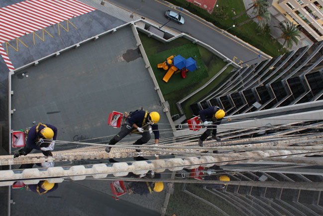Pintura de fachadas, patios de luces, medianeras, elementos de cerrajería, silos, torres, chimeneas industriales, etc...
